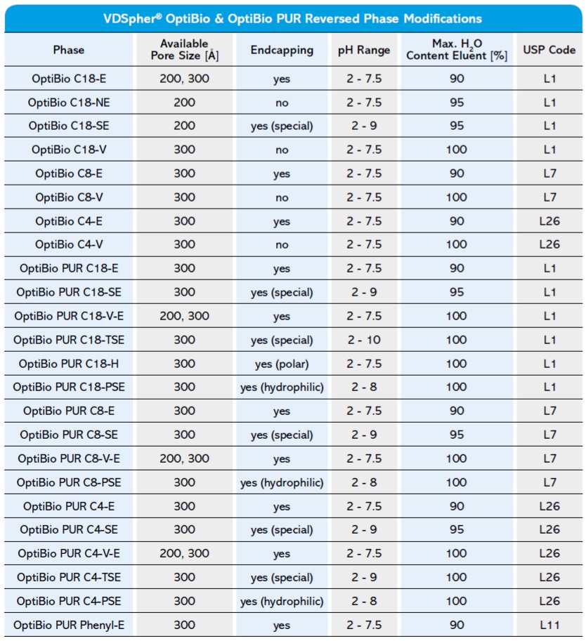 VDSpher OptiBio 生物大分子液相色譜分離柱